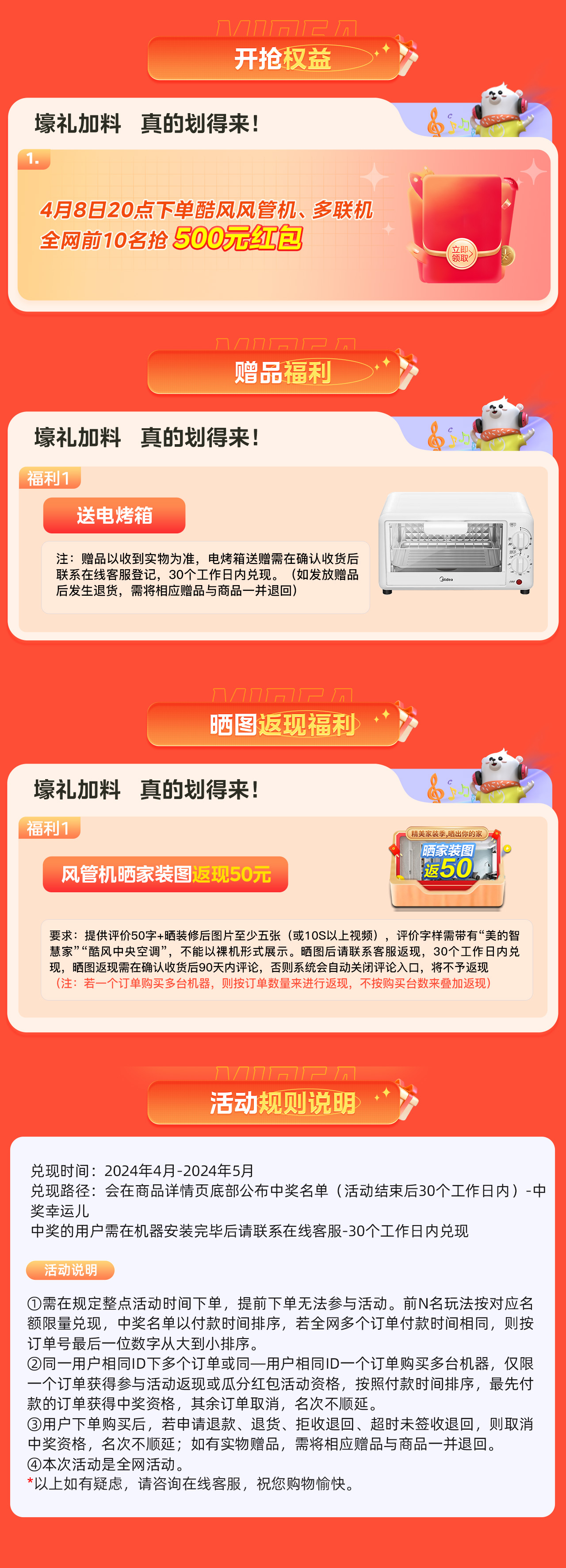 3、商家所售产品为全新正品,品质保证:开票公司为美的集团电商公司、美的集团旗下事业部、美的集团授权经销商、其他合作供货商等,具体以实际开出为准。