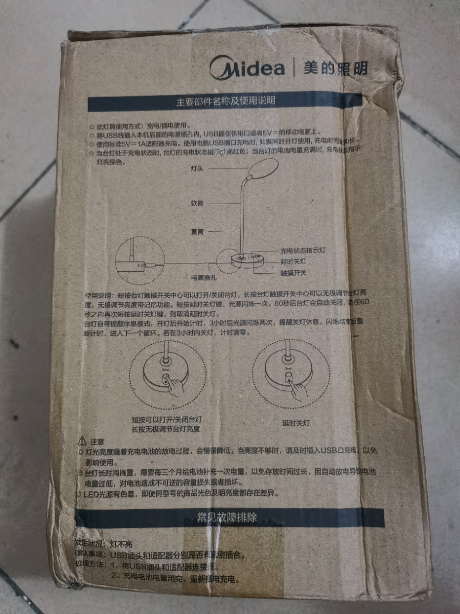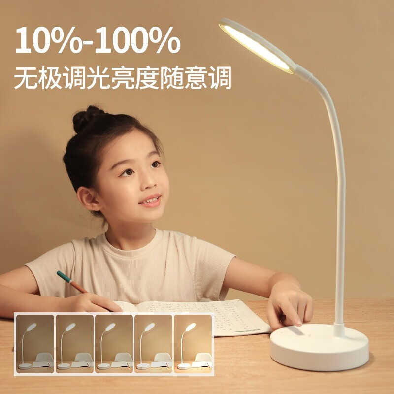 美的台灯充电款,充插两用方便,小巧不占空间,挺沉的,底部有防滑垫灯头可以随意摆动,灯光柔和明亮不刺眼,无频闪,很适合孩子学习,电池续航能力不错,充电有指示灯,618活动买的,孩子已经使用一段时间了。